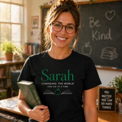 Celebrate the teacher who makes a difference! This custom personalized t-shirt features a beautiful "Teacher" design - the perfect gift for educators who shape young minds.