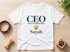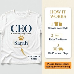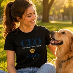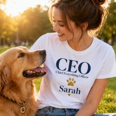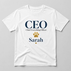 Who's the real CEO of the house? Your dog, of course! This custom personalized t-shirt features a playful "Dog CEO" design - perfect for proud pet parents who know who's really in charge.